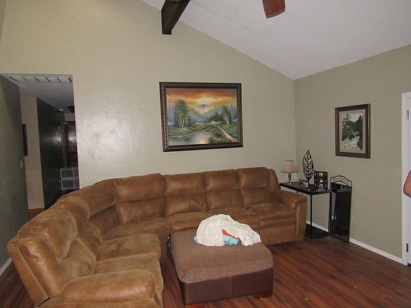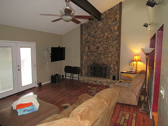Great home with good curb appeal. The kitchen is spacious and has a gas stove top. Large dining room, step down into huge living room with high ceilings and inviting fireplace. Large patio doors lead to a nice covered patio with hot tub ready to go! All floors throughout are laminate except for carpet in the bedrooms. Security system and dog friendly!