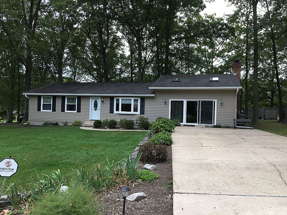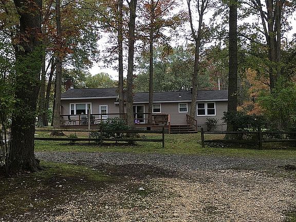 Original owners have loved this home! Gorgeous rancher with 3 bedrooms, 2 baths and a 50'x28' detached 3 car garage all situated on a private 1.36 acre lot! The home also features a 26'x20' family room with vaulted ceilings, skylights, oversized sliding glass doors and a stunning stone fireplace with hearth, mantle and cozy pellet stove insert! Sliding doors from the kitchen and family room lead to large deck overlooking the lovely yard, perfect for entertaining! Brand new roof, windows, siding and gutters too! The master bedroom has a private bath and double closets. All of the rooms are light and bright! The garage has three 9'6'' x 9'6'' doors, 10ft ceilings, a huge area for a workshop or storage, and a private office. Minutes away from the T. Howard Ducketts park including playgrounds, basketball courts, tennis, boat ramp, hiking and horse trails! Enjoy country living and be minutes from major routes, shopping and restaurants!