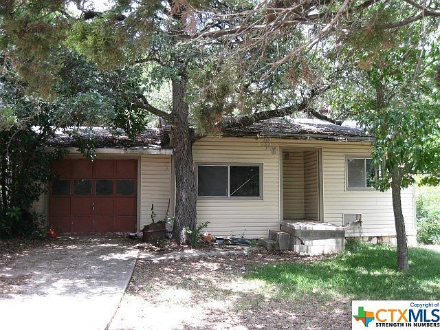 This home needs work but has lots of potential. It is a cabin style home with a very nice kitchen open to the living area large lot with huge trees. Pretty lot!