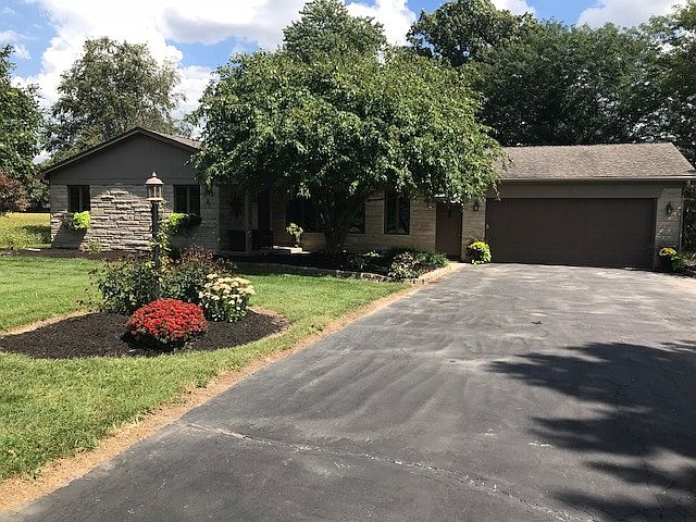 This perfectly landscaped 3 BR, 2 BA Bedford stone ranch is a must see! You can relax in the large living room or cozy up in the extra family room that features a beautiful stone fireplace. The galley kitchen overlooks the family room and also opens up to the vaulted ceiling dining area. Step outside onto the large patio and gathering area that's perfect for entertaining. All of this located in a serene and peaceful location but also minutes to town.