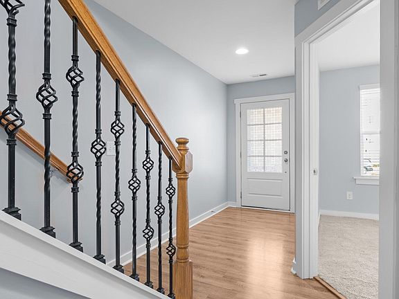 End unit townhome located within walking distance to neighborhood brewery, coffee shop, community pool, greenway, elementary school and middle school. 3 story unit with a large kitchen, island, gas range, LVP throughout the main level and foyer, oak tread stairs, fresh paint, updated fixtures, back porch, each guest room has a dedicated bathroom, updated full bath in the bottom level and oversized one car garage. Primary bedroom has walk in closet, two sinks, water closet and walk in shower with a bench. This unit also backs up to a greenspace area that is unique to this neighborhood. Other neighborhood amenities include a kayak launch, multiple dog parks and easy access to 540.