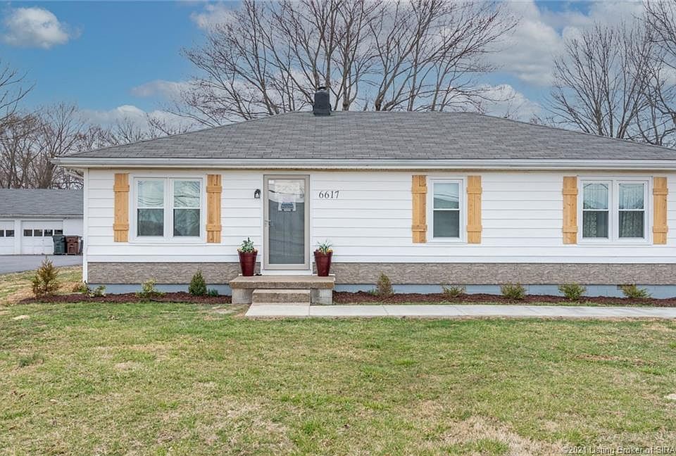 100% financing available with USDA for qualified buyers! Take a look at this totally renovated 1 story home that feels like you're in the country! The neighbors have goats! Spacious 1/2 acre lot has an oversized detached garage with a concrete floor that is perfect for a workshop and tons of storage! The home features 3 bedrooms and 1 full bath! New HVAC system, new water heater, and new windows! Fresh paint and flooring! New lighting! The electric and plumbing have been updated! Brand new eat in kitchen with white cabinets, stone look countertops, and stainless steel appliances that will remain! The new bath is bright and fresh with a new shower, vanity, and flooring! As soon as you pull in the driveway, you'll love the exterior details with the new cedar shutters and stone accents! New concrete sidewalk leading to the new front door! Step inside to the large living room with shining hardwood floors! The living room flows into the eat in kitchen! The kitchen walks out to the new concrete patio and great back yard space! Back inside and down the hallway are the renovated bathroom and 3 good size bedrooms! 1 bedroom has hardwood floors and the additional 2 bedrooms have new carpet! This great home is turn key and ready to move in! Easy access to all the new development in Jeffersonville along Highway 62 and the Lewis and Clark Bridge! This home is the total package! Call today for your private showing before this home is SOLD!