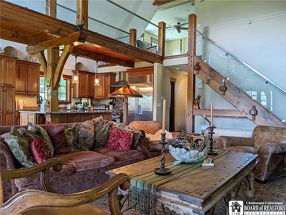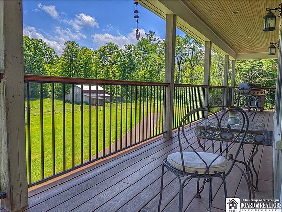 Don't miss this beautiful custom built home situated on 82 acres with scenic views of the horse pasture and barn. Wrap around porch for enjoying the summer weather. Enter into the open living room, kitchen and dining room beautifully finished with timber frame details, heated porcelain tile floors, quartz countertops, tongue & groove wood ceilings, vaulted ceilings & a wood stove. Enjoy meals in the breakfast room with windows on three sides. Finishing off the main level is a bedroom and bathroom suite with beautiful tile work, vessel sinks & solid surface countertop. The guest bath has beautiful finishes as well. The second floor has a loft bedroom, second bedroom and studio space overlooking the horse pasture. A finished walk out basement completes the floor plan with two bedrooms, one bathroom and a family room. Built new from the existing foundation in 2013. All new everything from framing to mechanicals to finishes! The only part of the house original from 1982 is most of the poured wall foundation. There is a horse barn & detached three car garage both original to the property. A combination of fields, woods & a pond out back. This is an amazing property & not one to miss!