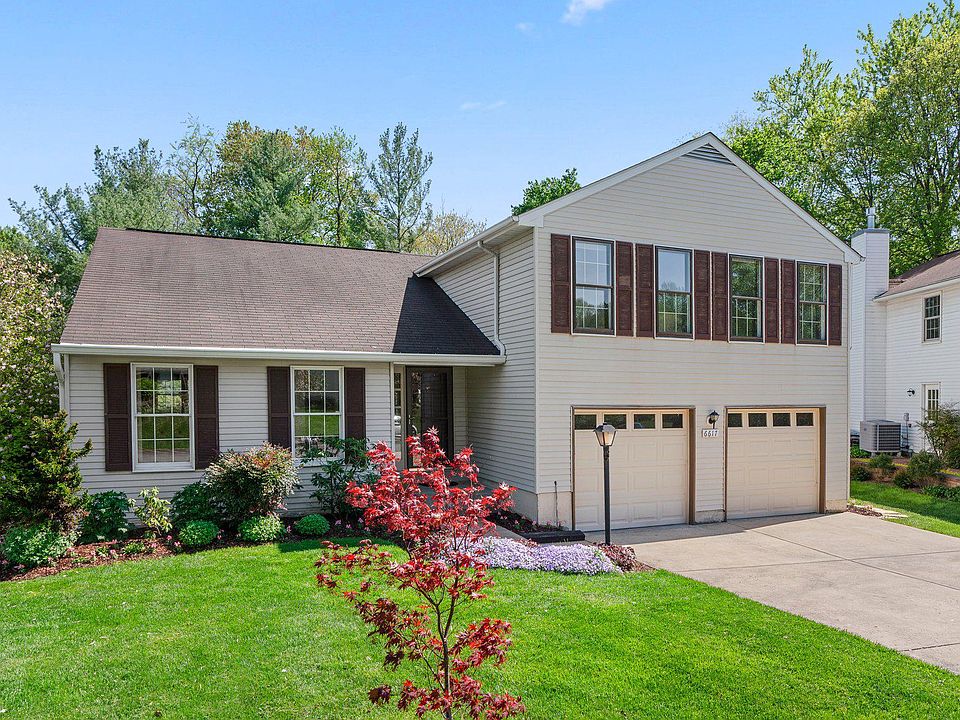 Perfectly set on a cul-de-sac, this upgraded colonial home is move-in ready! Step inside to find a foyer entry, freshly painted interiors, open living and dining rooms, and eat-in kitchen showcasing sleek granite counters, stainless appliances, hardwood floors, and access to the deck with built-in bench seating and screened porch overlooking the level backyard. Convenient main level laundry room. Upper level hosts 4 bedrooms including the owner's suite with walk-in closet and private bath. Hall bathroom features a sunny skylight. Lower level boasts a rec room and ample storage space. Maintained and updated by the original owners. NO CA FEE! Welcome home!