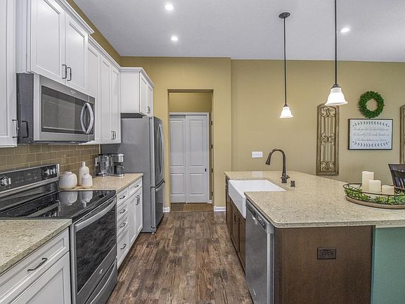 Better than new construction! Very gently lived in and greatly improved upon twin home! 9' ceilings throughout main level. Plantation shutters on windows. Second bedroom could be a main floor office. Kitchen offers maintenance free flooring, 42" tall cabinets, large island and a pantry!!! Laundry is just off the kitchen and passes through to the primary bedroom suite. Family room with gas burning fireplace and access to maintenance free deck. Walk-in shower in primary bath. Full Hall bath. Lower level has large amusement/family finished with space to finish a legal bedroom and add a bath! Reasonable HOA provides snow/lawn care, trash, exterior maintenance and insurance.