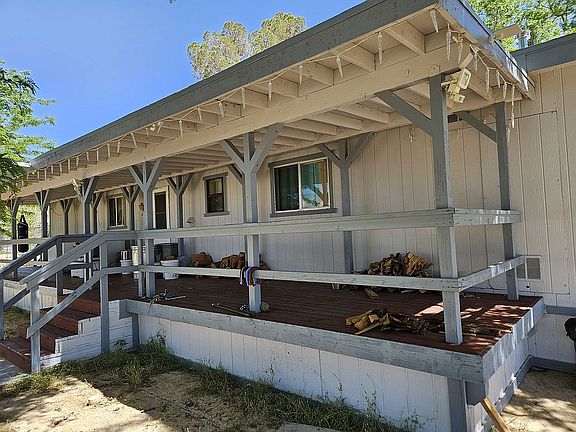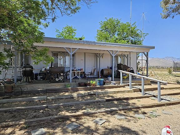 Located 1/4 mile off the pavement. 3 Bedroom 2 Bath manufactured home with drywall and wood siding upgrades on fenced 5 acres with a private well. Pistachio Tree. This property also features a large garage with huge built in work bench. Large front and back covered porches, 24' round above ground salt water pool, and a 60'X30' fenced vegetable garden area freshly planted 4/23 with automatic drip watering system. Located out of city limits with no restrictions. High speed cable internet and cell phone reception. Gorgeous views of the Eastern Sierras, good neighbors, 2 horse corral layouts in place with a tac room with new roofing. Private well has a 5500 gallon above ground tank and a UV light. Only 15 minutes from China Lake NAWS and main shopping. Only 3 miles from the corner store with gas station, Tesla charging station, and Ace Hardware/feed store. This home features lots of storage: 1 large closet and a linen closet in the large master bedroom and a large closet in the master bath, large pantry in kitchen along with a large coat closet that can also be used as pantry storage. A Bonus structure with 2 rooms and a full bathroom with shower, small water heater, large Mastercool, new roofing, and it's own septic. Bonus rooms were recently remodeled with new flooring, paint and bathroom fixtures. All building exteriors have fresh paint. Inside main home needs you to choose your paint and carpet, and some updating. Lots of trees on the property. Very unique with tons of potential! Does not qualify for a home loan due to age of the main home. Will have to be a cash offer.