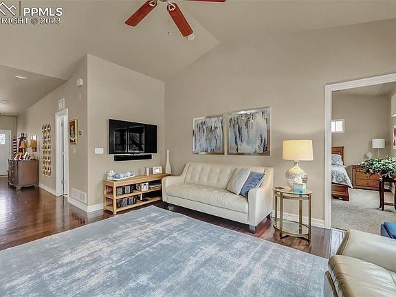 This property is a must see! What more could you ask for with a well maintained home in the award winning neighborhood of Banning Lewis Ranch. You are welcomed with beautifully maintained wood flooring that opens to a spacious living room, dining room and kitchen. With the primary bedroom located on the main level, this bedroom has a lovely master bathroom with an extended walk-in closet. With two additional rooms on the main floor, one full bedroom and one nonconforming bedroom but the excitement is downstairs. In the basement you will find a large grand room with an additional eating area just off the kitchenette and wet bar. The downstairs bedroom is connected to the full bathroom, convenient for any guest. Do not forget to check out the ample storage crawl space. This community is top in its class with some of the best community amenities in the city including a recreation center, pavilion, The Vista Water Park, junior Olympic pool, tennis and pickleball courts, and of course a dog park. And don't forget about the 75 acres of open space throughout the neighborhood and a trail system available to enjoy all the beautiful views of Pikes Peak. Entertainment is also right at your fingertips with the Power’s corridor just a 5-minute drive away.