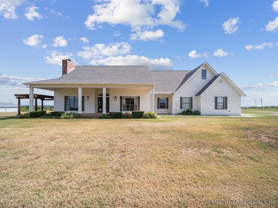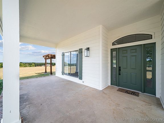 Here is your chance to live on 2+ acres of land while being just minutes away from all of the amenities that Tulsa has to offer. Sitting at 171st and Sheridan, this hilltop property is positioned perfectly to see miles away across beautiful green country and has been renovated from top to bottom. After enjoying the wonderful views from the spacious front porch, welcome home to a 17ft full brick fireplace and vaulted ceilings in the living room that flows into a spacious open concept kitchen and dining area. This show stopping kitchen has brand new cabinetry, appliances, and quartz countertops, with additional storage and a second full-size kitchen sink in the butler's pantry - an entertainer’s dream. Brand new luxury vinyl flooring runs through the main living areas of the home with carpet in two of the bedrooms. There is a bonus room with an exterior door that can be used as a private guest room, an office or a home gym. Additional cabinets in the hallway and laundry room along with an oversized primary closet, provide plenty of storage throughout. The spacious primary bedroom includes a newly renovated ensuite bathroom with a large custom vanity and quartz countertops. This established property also includes mature fruit trees and a garden area with raised beds. Don’t miss the opportunity to experience the tranquility of rural living with this beautiful property while still enjoying all of the amenities Tulsa has to offer.