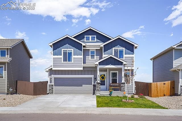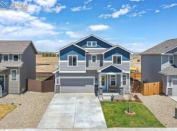 Why wait to build when you can buy this turnkey, Saint Aubyn Evans layout in Lorson Ranch, featuring 4 bedrooms on the second level! As you enter the home, your eyes will be drawn to the open entryway with office/bonus room located to the side with a 1/2 bathroom conveniently located off of the room. The large living room opens to the dining room and open concept kitchen. The gorgeous kitchen features 42" upper cabinets, stainless steel appliances, pantry, and island. The dining room walks out to the back yard... Upstairs, you will find all 4 bedrooms, including a large Master Suite. The master bedroom adjoins with a 5-piece master bathroom, featuring beautiful ceramic tile, a double vanity, separate tub, separate shower, and walk-in closet. The laundry room and 2nd full bathroom finish out the upper level. The roughed-in unfinished basement is perfect to add an additional bathroom, bedroom and rec room, or it can be used for generous storage space. Radon mitigation system, security system, water softener, and A/C are already installed! The backyard is fully fenced with 6 ft privacy fencing, full landscaping, and a patio for entertaining. Close to shopping/dining amenities, Peterson AFB, Schriever AFB, and Fort Carson. Don't' wait- this one won't last!
