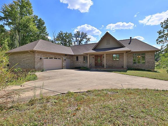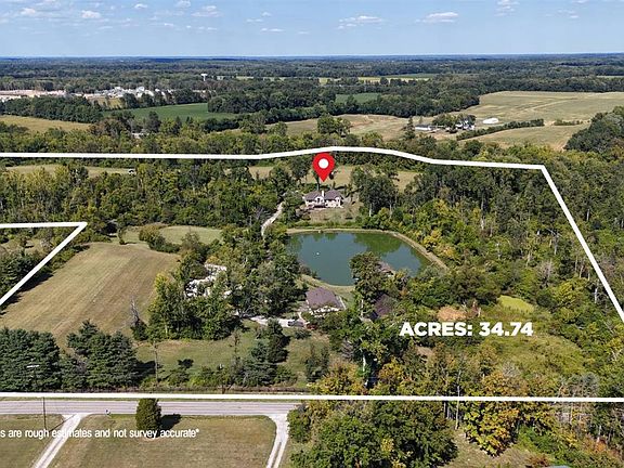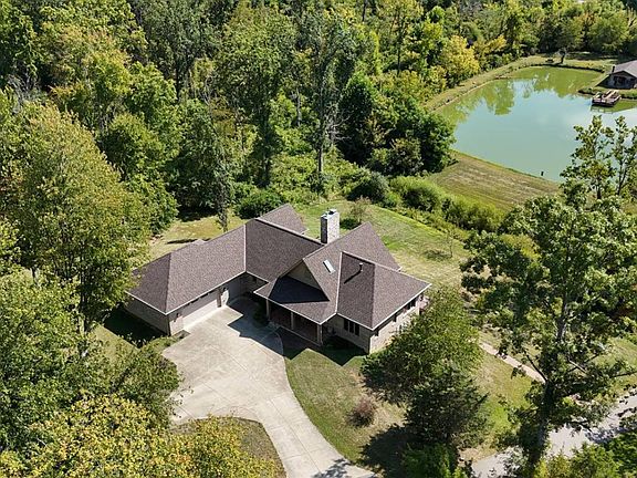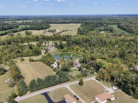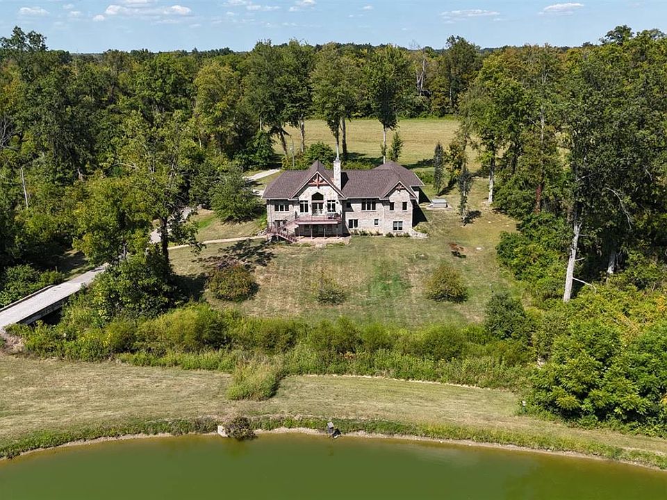 34+ acre private retreat just 7 miles from I-275. Fish, hunt, farm or just relax in your custom built 2011 ranch surrounded by nature and overlooking large pond affectionately known as Lake Joseph''. Including 42-foot shelter with WBFP, electric, and dock! Spectacular Great Room with cathedral beamed ceiling, floor to ceiling stone WBFP opening to 22-foot deck and cozy study with its own gas fireplace too! Open custom designed kitchen with granite tops, gas cooktop and island/bar. Primary bedroom has walk in closet, luxury bath and additional private study. Lower level 2 above grade bedrooms 2 full baths, family room, and 2 large storage rooms. Detached 3 car garage and additional storage barn building as well.