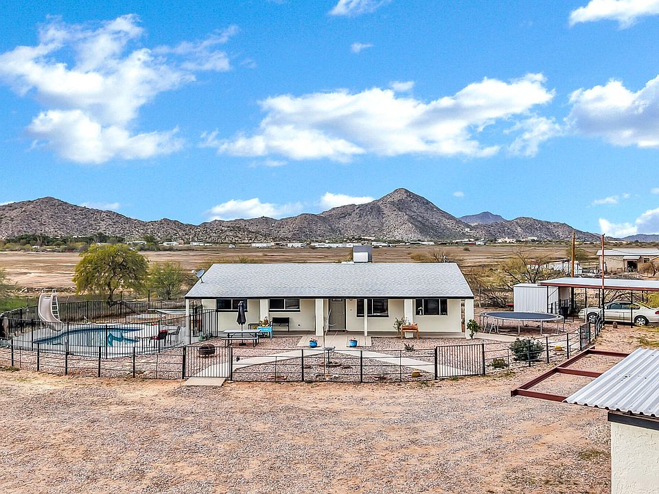 Bring your horses and toys! This carefully updated home sits on over an acre and blends modern comfort with authentic country living, featuring mountain views and wide open space. Interior updates include newer appliances, fresh interior and exterior paint, new light fixtures, newer carpet, granite countertops in the kitchen and bath, a new bathroom vanity, and the kitchen has painted cabinets, added cabinetry, and a new island. A new AC was installed in 2025. Outside, enjoy stunning sunsets and a self cleaning saltwater pool installed in 2023. Newer roof on the main home & storage room. True horse property with a heavy gauge steel 20x20 four horse barn mare motel and riding arena. Located in Coolidge near Casa Grande amenities, shopping & dining, Central AZ College, and easy I-10 access Enjoy the privacy and flexibility of acreage living in this horse property in Coolidge, AZ, offering wide open space, mountain views, and room for horses, livestock, RVs, and recreational toys. This over one acre property provides the ideal balance of peaceful country living near Casa Grande amenities.