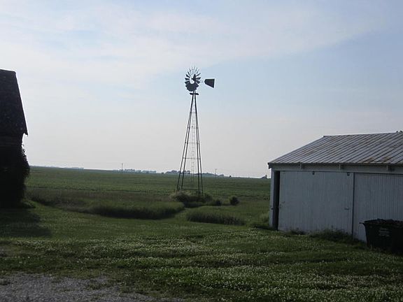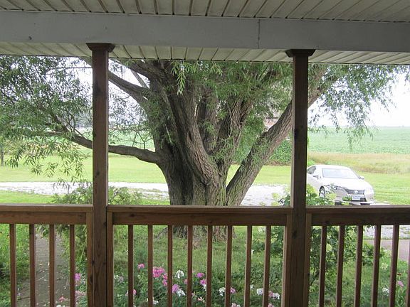 Peaceful acreage setting close to pavement & 1 mile from town. Fenced area for pets or children. Charming country style interior with wood floors and updated kitchen, countertops and floor. Nice main floor bath with skylight and a big covered front porch for enjoying the view. Corn crib crosses the lot line by a few feet and there is a permanent easement for it.