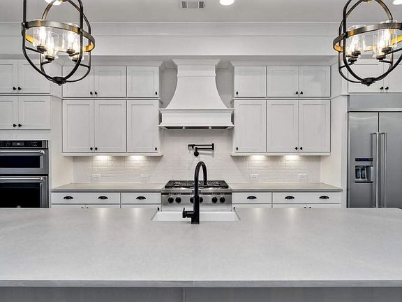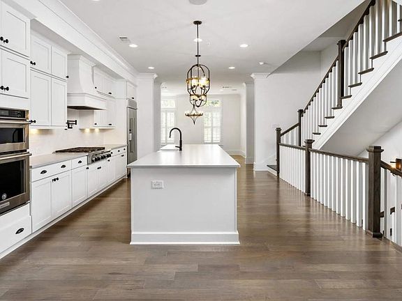 - Kitchen Features: Breakfast Bar, Eat-in Kitchen, Pantry, View to Family Room, Stone Counters, Kitchen Island, Cabinets White