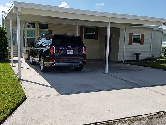 This uniquely designed two bedroom, two bath beauty is a very special home! It features beautifully designed triple angled, floor to ceiling transom topped windows. And not just one set but two. Just stunning! Enter through the front frosted glass door into the expansive living room with extra sitting/reading/computer area. Of course the cathedral ceilings throughout the home adds ambience and comfort to your living experience. Off of the living room is a lovely screened lanai where you will enjoy our tremendous tropical Florida breezes. Both bedrooms are spacious as are the two full bathrooms. Your guests will feel pampered in their room! The kitchen is well appointed and flows seamlessly into the dining room. This is a must see home for the discriminating buyer. Perfectly priced. Lot rent $785 per month plus $56.19 per month pass on taxes. All listing information is deemed reliable but not guaranteed and should be independently verified through personal inspection by appropriate professionals. Integrity Mobile Home Sales cannot guarantee or warrant the accuracy of this information, measurements or condition of any property. Measurements are approximate. Lot rent is subject to change.