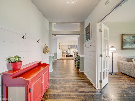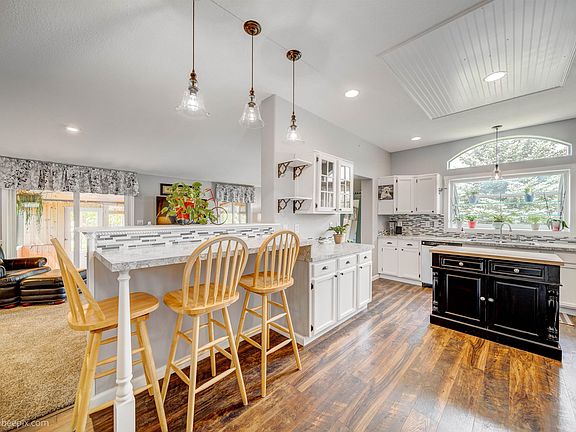Enjoy your mornings on one of this beautiful home's decks, situated across the street from Riverside Park. Enjoy wildlife and nature with only 20 mins commute to downtown. This property features a spacious entertaining space, a relaxing primary suite, sunroom, greenhouse, established garden & beautiful mature landscaping ~ Horses allowed. Features include new flooring & paint, new vinyl windows & stainless steel appliances. Roof is just 2 years old and property is fenced. You wont find another like this one!