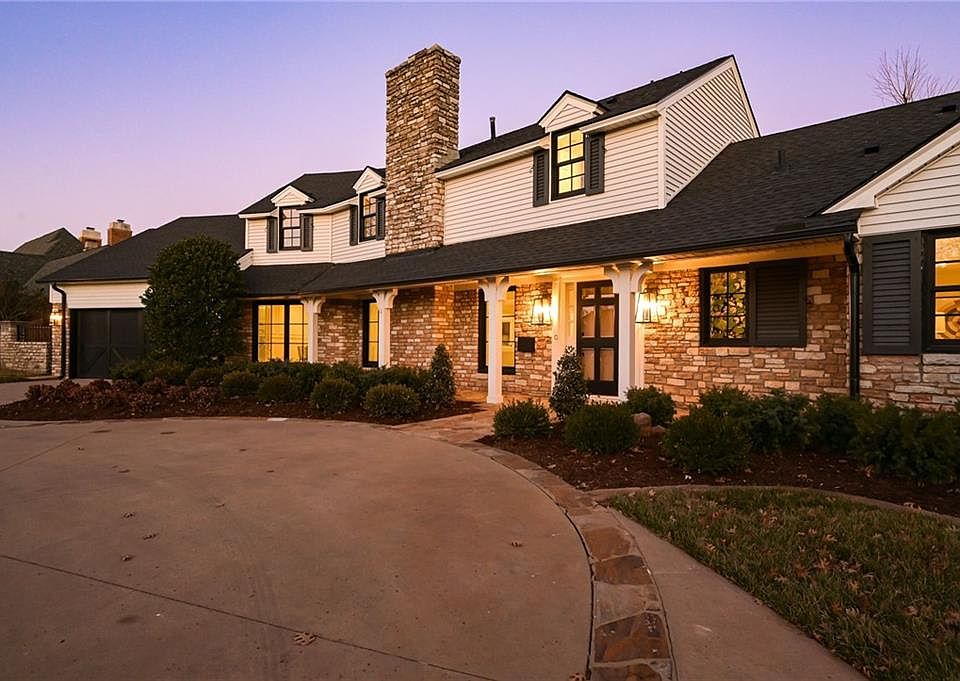 Traditional meets modern elegance in this rare two story stone home in the heart of Nichols Hills. Mere steps from the Oklahoma City Golf & Country Club there is truly no better location. Upon entering the home you're greeted by an expansive formal living room with views of the stone back porch through a wall of windows flooding the home with natural light. The chef's kitchen features white oak custom cabinetry, KitchenAid Pro appliances & Taj Mahal granite. A family room with rich wood accents, fireplace & bar is the perfect spot for a cozy evening in. The first floor primary bedroom with a 12 foot vaulted ceiling, mont blanc marble fireplace, grand designer closet & en suite primary bath with soaking tub, marble tiled glass shower & his & hers sinks. Upstairs are three generous bedrooms (two en suite) plus game room with hard wood floors throughout. This custom designed home is a rare opportunity to combine luxury living with unparalleled privacy in the heart of Nichols Hills.