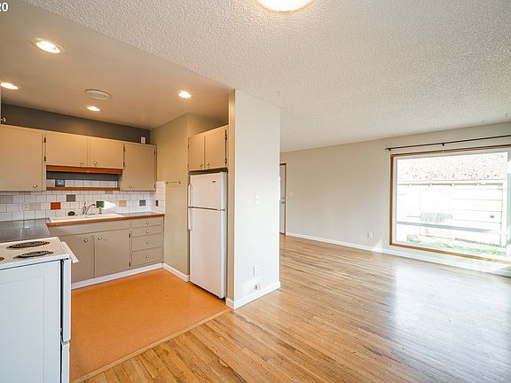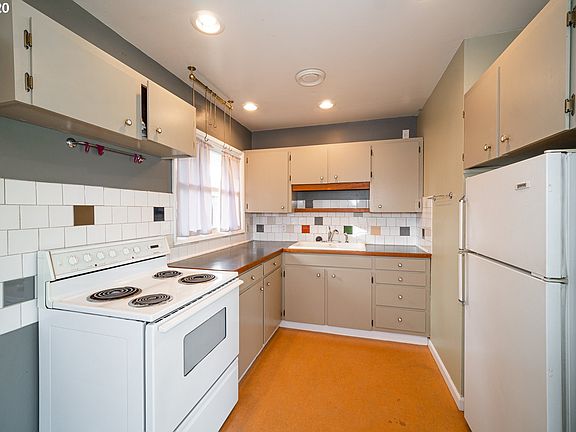 Charming starter with lovely plantings front and back and an alley access over-sized 1 car garage with storage. Yard is fully fenced and lot zoned R2. Entertain out on the nice private patio! Home offers charming hardwoods in the living room, hall, and bedrooms. It's also got nice vinyl windows, Marmoleum in kit/bath, and gas heat and good size rooms. Range and refrigerator remain. Separate laundry room! HES = 8! Deadline 3/12 8am. [Home Energy Score = 8. HES Report at https://rpt.greenbuildingregistry.com/hes/OR10182907]