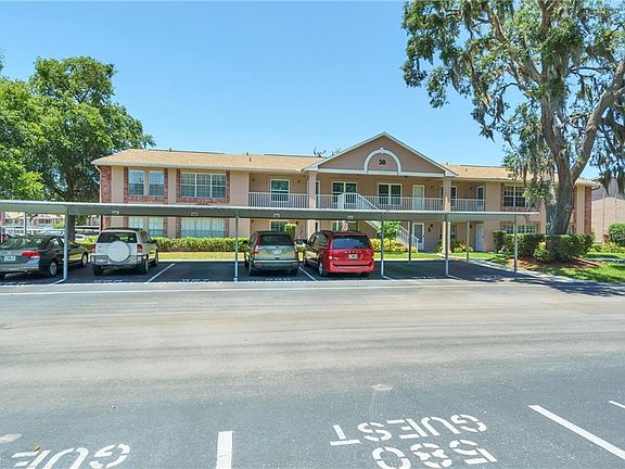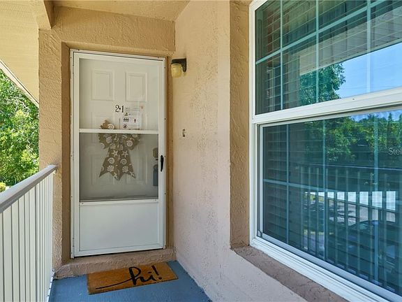 EXCEPTIONAL TURN KEY UNIT Ready and Waiting for you!! One of the largest units Sunnybrook has to offer boasting 1055 square feet of living space! Vaulted ceilings and split floor plan create an open and airy feeling in this 2 Bed, 2 Bath, 2nd floor end unit. A large master bedroom and bath with walk in closet provide the true luxury and privacy you are looking for. New wood floors have been added to the living/dining area. Enjoy your morning coffee from your enclosed patio overlooking a partial view of the plush courtyard while offering privacy and storage too!. This sought after Gated community offers lots of amenities including a LARGE heated community pool/spa, tennis courts, bocce ball. Enjoy well manicured grounds with pond views while being only a short drive to downtown New Port Richey with its variety of restaurants, tap houses, shopping and Sims Park. Golfing, parks, beaches and public transportation are also nearby making this the perfect place for the snowbird or year round resident too! On-site property management makes this a true maintenance free gem! This unit has a Newer A/C and inside stackable washer and dryer adding to the ambiance of this move-in ready home. All furnishings with brand new master bedroom set are available. Call today for your private showing or virtual tour.