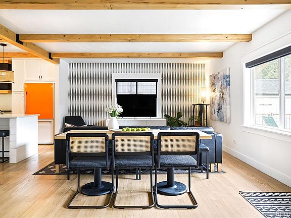 Stylish upgrades are showcased throughout this remodeled Wheat Ridge residence. Poised on a large lot, an expansive front patio is enveloped by a lush green lawn w/ picturesque landscaping. Further inside, an open floorplan unfolds w/ updates throughout including new windows. Exposed wooden beams run overhead expanding the scale of the space further. A living area w/ an eye-catching accent wall meanders into a dining area for seamless entertaining. Delight in crafting new recipes in a sleek kitchen boasting an open center island w/ seating, all-white cabinetry, open shelving, beautiful quartz countertops and new appliances. Three sizable bedrooms are complemented by two baths w/ modern tiles and fixtures. The newly finished 300-square-foot studio attached to a 2-car detached garage provides limitless options- game room/office/home gym get creative. Enjoy outdoor relaxation in a private backyard surrounded by mature trees and covered patio to enjoy a beautiful evening. An ideal location that offers proximity to Downtown, Sloan’s Lake, the foothills and all that Edgewater has to offer.