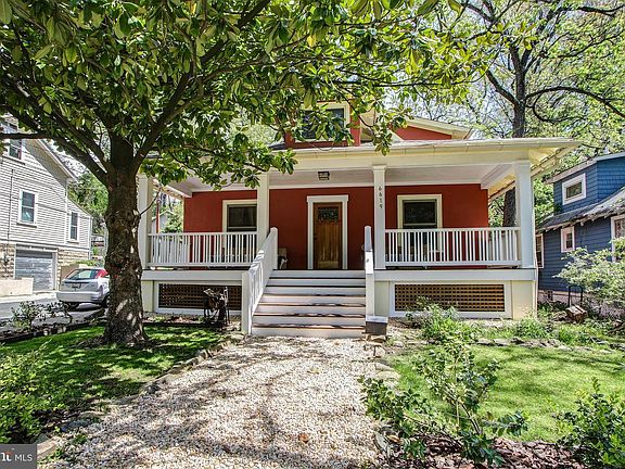 A lovingly restored & updated bungalow on one of Takoma Park's most cherished streets, you'll feel the stewardship, thought, care and effort that went into this gorgeous, open and warm home. With award-winning architecture, this warm and carefully-crafted home has been featured in Washington Home & Garden - and our local "Colors of Takoma" poster! Living room with fireplace and custom builtins and a front to back red-oak timber mantelpiece opens to dining room with large, built-in floor-to-ceiling hutch, and in turn to a cook's kitchen with Viking range and commercial grade hood. A pair of bedrooms and spacious remodeled full bath accompany. Upstairs, a tasteful owner's suite features vaulted ceilings and a private balcony overlooking the garden - while the lower level enjoys a bright rec room, additional bed and bath, and ample storage and workshop space. Essentially private parking on adjoining dead end street. All just steps to town, farmer's market, restaurants and shops including the new Cielo Rojo, Girl and The Vine, Trattoria da Lina, and Republic and metro! From the classic front porch - now brought up to date with Brazilian hardwood decking - to the internal pillars, which echo those of the facade, to the abundant red oak accents, every sightline is a 'welcome home!'