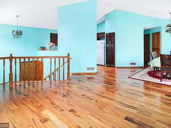 Beautifully updated, turn-key home with brand new kitchen cabinets, countertops, and hardwood flooring on the main level! This home also features a newer roof (2017), updated windows, furnace, washer/dryer, driveway, finished garage, and much more! Open Kitchen, dining, and main floor living make this home flow beautifully. Awesome lower level, walkout living space, is perfect for your entertainment center dreams! The spacious fenced-in backyard allows for a relaxing oasis with stunning pond view. Enjoy walking trails around the pond and plenty of beautiful parks nearby. This home is a must see!