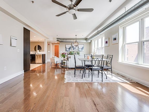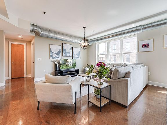 This spacious top-floor, corner residence in the boutique South Pointe elevator building offers an abundance of natural light with its 16 windows, showcasing amazing views and sunsets given its South and West exposure. At ~1800sqft, the open layout provides ample space for a true living room, dining room, and work-from-home needs. The true three large bedrooms offer generous storage with double closets or walk-in closets, along with additional storage options throughout for additional coat and linen closets. The open kitchen boasts high-end LG and GE appliances, white quartz countertops, and chic wood cabinetry. The unit features oak wood flooring, central air conditioning, washer/dryer, and designer lighting fixtures. As a top-floor and corner unit, it provides an oasis from day-to-day city living! The unit includes deeded, onsite garage parking for 1-car and offers additional parking for a fee at the nearby Sky Club. The location is highly desirable, with convenient access to transportation options like the Blue HOP right outside the front door for PATH trains, parks such as Madison, Jackson, and Southwest Park with its Farmers Market and Pickleball courts, Xcel fitness center, and other amenities. Ideal for commuters to NYC, the Light Rail, Newark Airport, and major highways like NJ Turnpike, Rt 1&9, 78, and 139. Don't miss the opportunity to call this home your own!