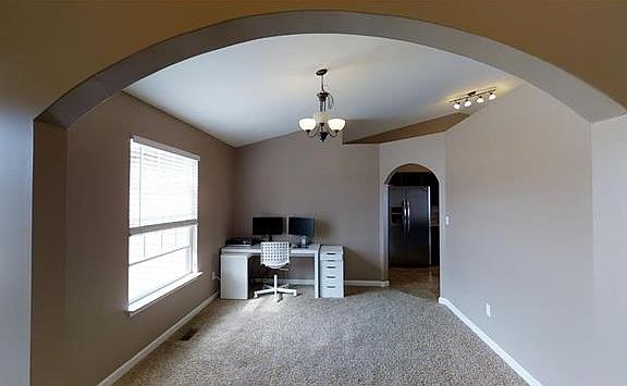 - Interior Decor: Open Floor Plan, Some Carpeting, Coffered Ceilings