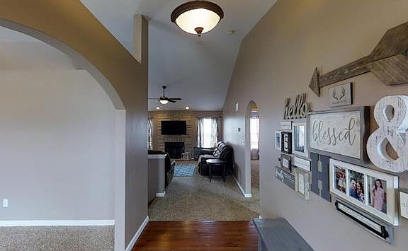 Welcome to your next home. Walking into the HARDWOOD entry foyer you notice the home has a great open flow. Vaulted great room is a great place to relax or entertain. The main focal point of the great room is the wood burning fireplace with STONE surround to the ceiling! Separate dining room/office flows into the eat-in kitchen with plenty of cabinets & counter space. A pantry, breakfast bar & breakfast room complete this area. Divided bedroom layout. Owner's private suite has coffered ceiling w/fan, 4 window bay & walk-in closet. Private bath has dble bowl vanity, separate tub & AMAZING WALK-IN shower w/SLATE tile surround, double rain heads & jets! 2 other bedrooms are ample in size & have ceiling fans. What else? Step out from the breakfast bar onto a beautiful STAMPED concrete patio that stretches the entire length of the home! A great spot for those spring time BBQ's. Don't forget to check out the 3D TOUR!