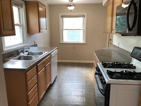 3 bed 1 bath house, freshly painted with new appliances, and hardwood floors in living and bedrooms. Full basement, small front porch, and attached deck. Full two car garage, and large concrete driveway that you can turn your car around easily. Central Air conditioning. Laundry hook up available in the basement. The property has a gas range, new microwave and new dishwasher. Refrigerator not included. $40 application fee. First month and security deposit due with approved application at signing. Proof of income required with application ($3300/month income to qualify). Tenant is responsible for paying all utilities and maintaining the yard. One small dog is allowed with additional refundable pet deposit of $1100. We perform background, credit and eviction checks. No smoking or vaping allowed.