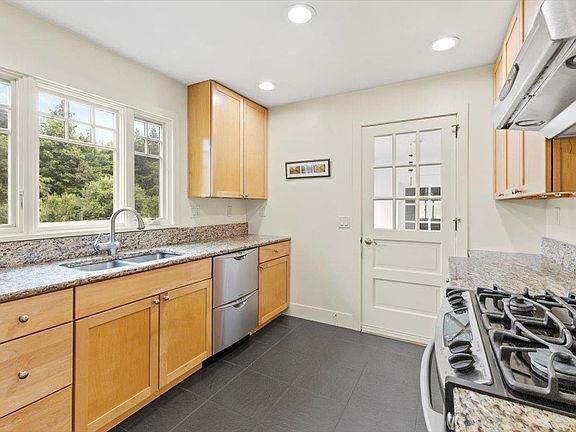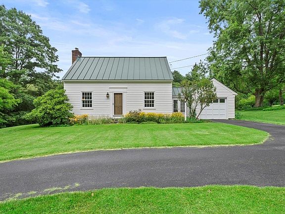 On the outskirts of town, sits this delightful Cape style home on 3.4 beautifully landscaped acres. Pride of ownership is evident throughout from the standing seam roof on the house, garage and barn down to the Buderas boiler and hot water heater in the basement and everything in between! Charming breezeway connects the 1-car garage to the house where you step into the updated kitchen with solid wood cabinets, Italian tile floor and granite countertops. The living/dining room is paneled in knotty pine and includes a hearth with woodstove insert that keeps heating costs down and the house cozy in the cooler months. There is a powder room and another room that could be used as a dedicated dining room, first floor bedroom or office, whatever suits you! Upstairs there is the primary bedroom, guest bedroom and full bath. Wood floors throughout with the exception of the kitchen. The setting for this home is a nature lover or gardener's dream with hazelnut trees, blueberry bushes, Honey Crisp and Liberty apple trees, a stream and even a goldfish pond. The barn could be home to horses, goats, or just your outdoor equipment. This is a gem of a property!
