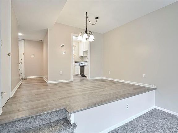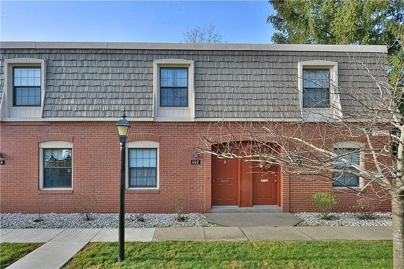 Maintenance free living close to the city and airport. This lovely condo is ready to move into with welcoming entry of laminate flooring leading to dining area and Kitchen. White kitchen offers all stainless steel appliances/microwave 1 yr old and dishwasher 1.5 yrs old. Make entertaining easy with the open dining area to the sunken great room with new gray carpet. Triple sliding door leads to private wood deck with storage unit. All flooring on 1st floor is newer. 2nd level offers master bedroom with double closets and newer carpet plus 2nd bedroom with stackable washer and dryer. Hall bath completes this level. Community offers: Pool/Pub-Restaurant/Salon/Party Room/Tot Lot/Courts and Laundromat. HOA includes gas,water,sewage,exterior maintenance,landscaping and snow removal. Home Warranty.