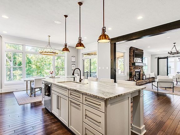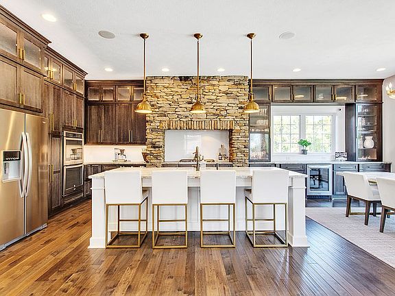 Former Aspen Model! The exterior features Expresso Hardie Plank, brick water table, cover front porch with exposed wood beams, covered rear patio & deck, two shared gas fireplaces and a heated inground pool with retractable cover & fountains. The lofty 10' ceilings and the bench seats along the stone fireplace will make you feel like you are at a ski resort. The gourmet kitchen is every entertainer's dream with its 9' island, dark smoke-colored cabinetry, a custom stone hood and picture windows that illuminate the space with natural sunlight. The cathedral sunroom with wet bar overlooks the amazing rear deck and pool. The second-floor bedrooms all have walk-in closets and bathroom access. The master suite features custom closets & board & batten headboard wall. The master bath has a freestanding tub w/ a stone waterfall, & an open-concept shower! The third floor features a guest suite. The massive LL has a hearth room, theater room, guest suite, kitchenette & a huge multi-purp room.