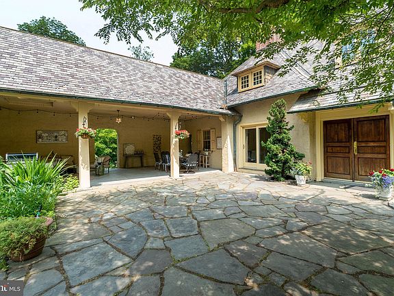 Designed in 1900 by prominent architect Horace Trumbauer as the carriage house and barn for the Islefield Estate, this turn of the century home is now a wonderful mix of classic charm and modern amenities. This is a must-see property and a rare opportunity if you are looking to own a unique home with Main Line history, and have a vision that will allow you to update to taste - this could be your dream home! Entering through dark wood double doors into the main hall, you will immediately feel the history of this home with exquisite details such as painted brick walls, a classic checkered entry floor, 12 ft ceilings, and deep window sills. To the left side of the entry is a bright and airy dining room with glass sliding doors granting access to the front patio, the large kitchen with granite countertops and subway tile backsplash, a conveniently located laundry/mudroom, and a half bath. To the right of the foyer lies the heart of this very special home - the grand living area with gleaming hardwood floors, coffered ceiling, recessed lighting, wood-burning fireplace, and gorgeous floor to ceiling wall of windows. Just beyond this spacious, sun-filled living space is an intimate study/sitting room with a wall of built-in shelves and cabinets, and a cozy ensuite bedroom complete with separate entrance, built-in shelves and storage, and a beautiful full bathroom with radiant heat flooring. Tucked away at this end of the house is also a rear staircase leading to a second level bedroom suite, perfect for an au pair, with bedroom, full bathroom and sitting area. Completing the second level are four additional bedrooms, two full bathrooms, and multiple hall closets offering plenty of storage. Outside, a delightful piazza with old world charm provides the perfect place for al fresco dining and outdoor entertaining, and connects the house to the original barn. Converted in 2014/2015 by Rudloff Custom Builders, the barn and hayloft now feature an expansive first floor bonus space currently used as a design studio, 2 additional rooms, plus plumbing rough-ins for a future bathroom or spa! (this level is approx. 2200 sq ft). The second level offers a two bedroom apartment with living room, kitchen, laundry closet, full bathroom, and separate entrance - great for in-laws, college age kids, or guests! (approx. 855 sq ft of living space) The total square footage of living space for this unique home is approx. 7915 square feet. There is also a two car garage beneath the barn. In addition to the amazing barn/hayloft renovations, the owners of this property have done significant landscaping with grading and tree removal, converted from oil heat to gas, and installed newer water heater and HVAC systems. Located in Top Rated Radnor School District and close to major roadways for an easy commute to Philadelphia, Wilmington and the airport! Minutes to some of the best shopping and dining options along the Main Line and walkable to Agnes Irwin School. Do not miss this beautiful property! 3D Matterport Tour available. For Our Open Houses: We will be following safe showing protocol - all agents and visitors must sign in and wear masks and gloves, only one group permitted inside at a time, 15 minute increments - Thank you and please be patient as we navigate this safe Open House process!