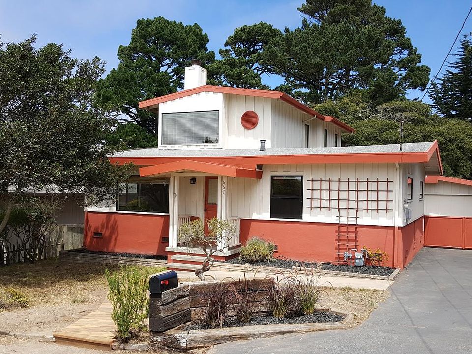 Spacious, 1900 sq ft family-style home in desirable, easy access neighborhood within walking distance to shopping and restaurants. First floor features hardwood floors through living room and separate dining room. Two downstairs bedrooms with large closets. Eat-in kitchen with lots of counter and pantry space. Upstairs Master bedroom with double walk-in closets and outside balcony deck overlooking rear yard. Master bath with hot tub and large vanity. Upstairs ocean view den with many windows and cozy fireplace. Detached 4th bedroom could be used as private office or studio. Entertainer's rear deck with heater and gas hook up for grill. Two car garage with ample storage space. This fenced backyard with gorgeous oak trees and peaceful setting is a must-see!