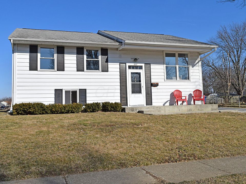 4 bedroom, 2 baths in Gahanna. Ideal location, prime corner lot with fenced yard, patio, and 3 season room. Upper level has an open floor plan: Kitchen with Stainless Steel appliances with wood flooring open to the Dining Area, Living Room with plush carpet and floor to ceiling windows for great natural light; 3 bedrooms, 1 full bath with tub/shower. Lower Level has Laundry Room, additional Bedroom, Full bath with Shower, Family Room and a flex room for storage, play room, or office. Vinyl replacement windows by previous owner, Roof-7 yrs old, Furnace-16 yrs old, A/C-6 yrs. Concrete Driveway. Close proximity to Grocery, Easton, and 270. Correct documented square footage is 1711 soft per an Appraiser's sketch.