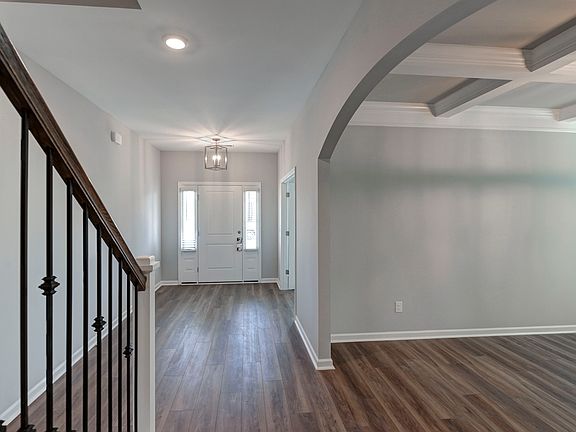 The Yates is a two-story home with 6 bedrooms and four full baths. The large foyer is the prefect greeting and is flanked by a private office with french doorsand a formal dining room. A pass-through from the dining room, which has a coffered ceiling, leads to the kitchen and breakfast area. This open and functional kitchen features a breakfast bar, island and large corner pantry. A guest bedroom is also located downstairs. 4 secondary bedrooms are located upstairs and all but one feature walk-in closets and have access to two full bathrooms. A large laundry room is also located upstairs. The luxurious primary suite, with a boxed ceiling, features a sitting area, dual closets, and bathroom with separate garden tub and shower with separate sinks. Come see this home in Catawba Hill today!