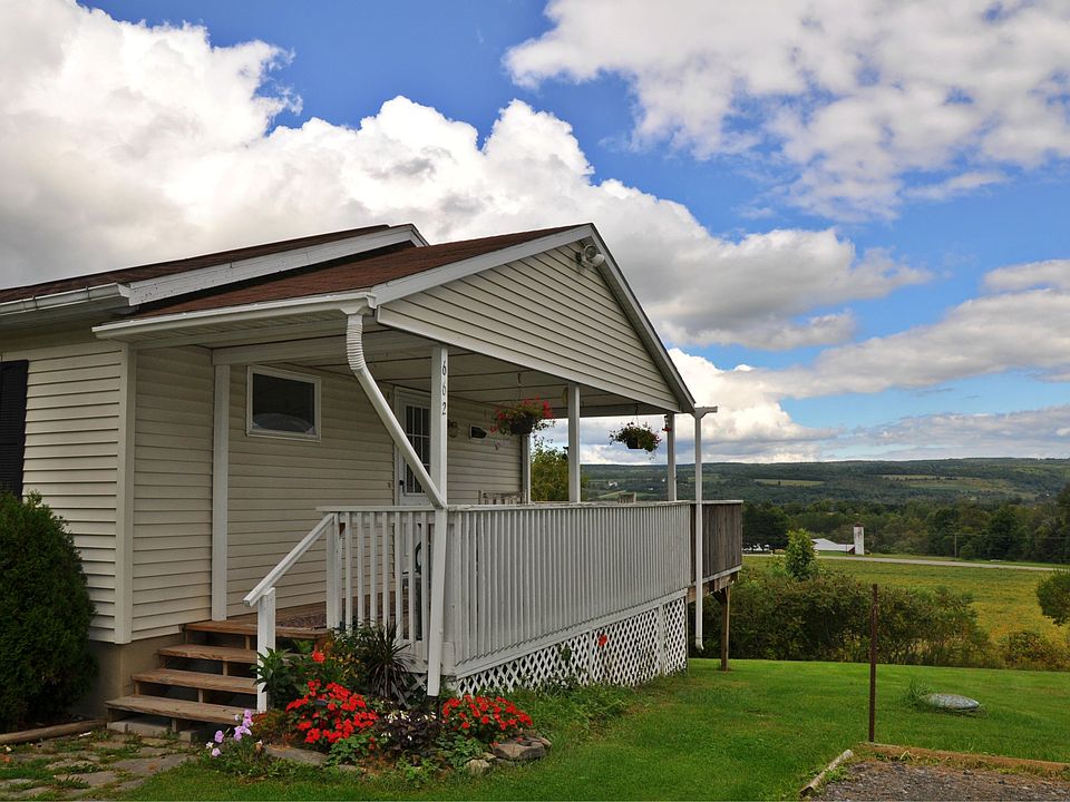 Country terrain, modern & convenient living, all at an affordable price! This lovely ranch home sits on 5 acres w/ sweeping hillside views from the large deck. Enjoy the paths in the woods, crossing the stream that runs through your property with the new bridge, and the many fruit trees & berry bushes on the property. First level features open kitchen & DR, spacious LR, 2 BRs & 1 full bath. Lower level has a very large family room w/ wood stove & sliding doors to outside, plus another bedroom, full bath, & utility room. Lots of privacy, wildlife, and views! Make an appt & see it for yourself!
