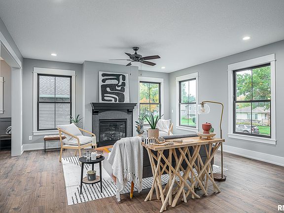 Welcome to the easy living of Jefferson Place, where old meets new near the Mississippi River. This beautiful two-story home was impeccably built by Applestone Homes, mixing hints of the 1920s with the joys of modern esthetic. The partially open floor plan brings the benefits of separate spaces with still an airy, connected feel. The large great room features nearly floor to ceiling windows and a gas fireplace, which opens to a grand kitchen with stainless appliances, large peninsula with honed granite, soft-close drawers, backsplash and hood. Walk-in pantry with barn door closure has additional appliance counter and options for shelving. The dining room features a custom banquette with plenty of room for large dinner parties. A flex room off the dining area could be an office, playroom or den. Large, walk-in storage closet and drop zone with access to the attached 3-car garage. Upstairs there are 4 bedrooms, 2 full baths and a laundry room. The primary suite has an extra large closet, dual sinks with vanity space and a beautifully tiled, walk-in shower. Outside, the home is flawlessly landscaped with private patio featuring a gas fire pit and string lights. The easy-to-maintain yard allows time to enjoy the park with sidewalks, a brand new playground, and pickleball/tennis court, or jump on the bike path a block away or meander towards the Village of East Davenport. Basement is unfinished and ready for your dreams!