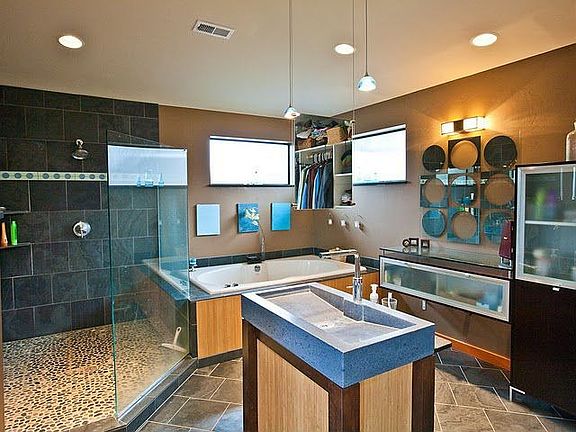 2,753 square foot creative split level home with large, open floor plan...great for entertaining. 3 bedroom, 2 ½ bath plus den built in 2006. modern style interior with many unique materials like concrete, bamboo, cork, paperstone, and custom metal work. fully landscaped. fort in back yard. kitchen is designed beautifully to work efficiently in. skylights on two floors. additional office area by the kitchen. forced air heating & air cond. excellent, quiet neighborhood on the westside of hood river in stonegate. Neighborhood Description wonderful, set-apart neighborhood, a one-way loop for less traffic, quiet, friendly, easy to let the kids out and play, very safe!