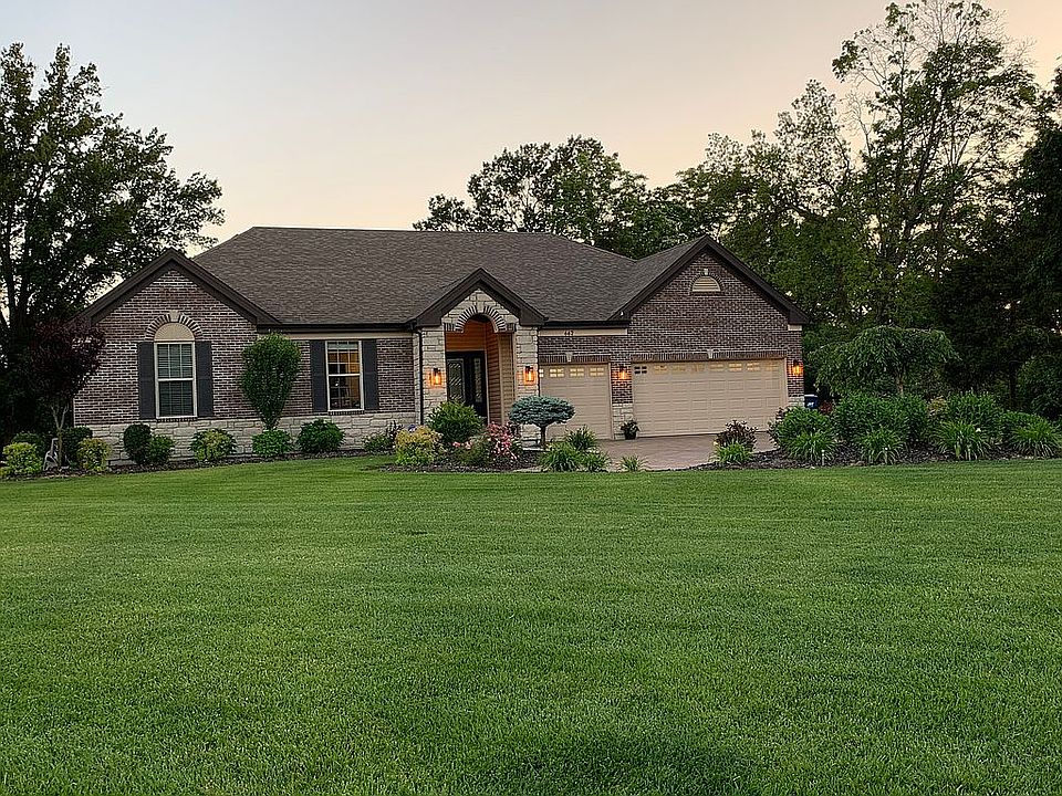 Fantastic modern Custom Ranch-Rambler floor plan with open spaces and spacious yard. Great outdoor space for entertaining and heated 3 car garage.