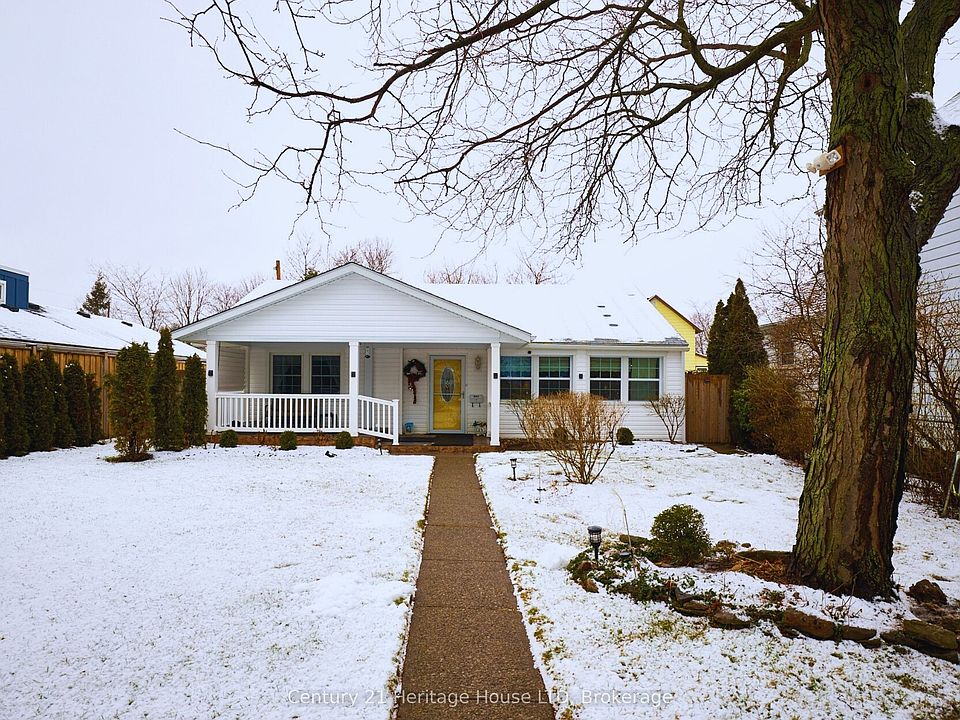 Location, Location, Location! Wake up to breathtaking sunrises over Lake Erie, best enjoyed with a morning coffee on the front porch, or unwind in the serenity of your private, landscaped, fully fenced backyard. Ideally located just steps from the shoreline, this tastefully updated 2-bedroom + office, 1-bath home offers the perfect blend of charm, comfort, and convenience. Inside, the bright, carpet-free layout features two main-floor bedrooms, a 4-piece bath with a corner jacuzzi waterfall tub and a custom eight-jet shower, and a spacious family room with vaulted ceilings, laminate floors, two gas fireplaces, and large windows framing garden views and distant glimpses of Lake Erie. The two gas fireplaces add nostalgia to the already cozy atmosphere throughout the winter season. French doors connect the family room to the dining/living space. Outside, enjoy beautifully landscaped gardens, lake views from the front porch, and a generous lot set back from Lakeshore Road for added privacy. Steps from the Friendship Trail and minutes to uptown amenities, this property also includes three detached sheds, a single driveway with parking for 3 to 4 vehicles, and ample green space. Notable updates include a covered porch with water views, most windows replaced, a backyard gazebo, and a new split heating/cooling system. This is a rare opportunity to own in one of Fort Erie's most sought-after lake-adjacent locations.