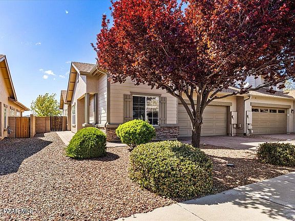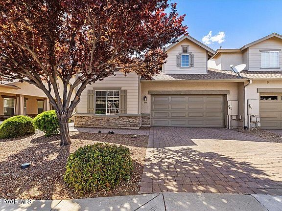 This adorable townhome backs onto open area space offering unobstructed views of the Bradshaw Mountains. Enjoy the quiet privacy the backyard offers. This home offers upgraded wood laminate flooring throughout, great room with a large kitchen that has granite countertops, tons of cabinet space, a large pantry and eat-in dinning area. The living room offers great space for relaxation or entertainment with gas fireplace and built in entertainment center. The two guest rooms just off the living room provide a great space to use as bedrooms, office or den and most importantly provide the desired split floorplan. The primary bedroom is huge featuring laminate wood tile in the bathroom with double vanity sinks, walk in shower with seating area and large walk in closet.