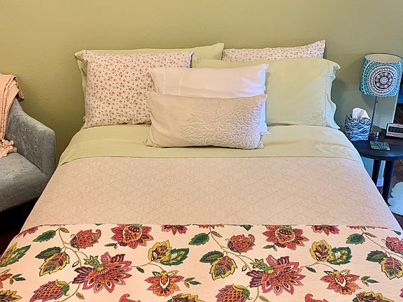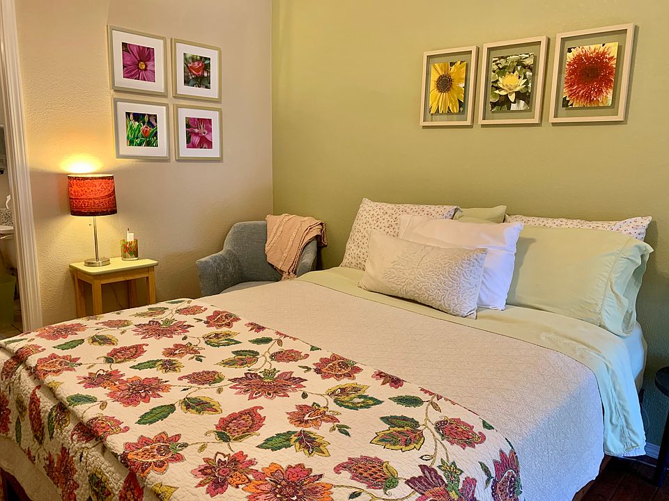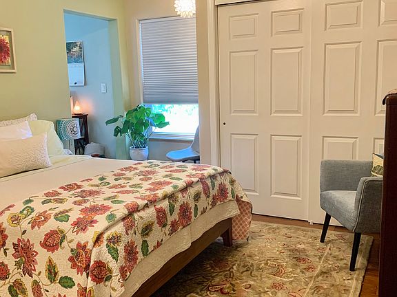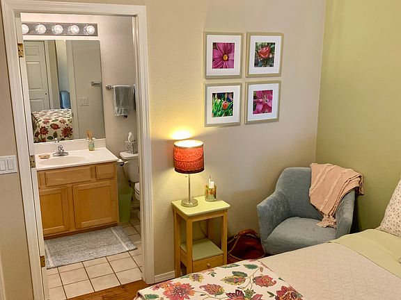 A FULLY FURNISHED, TWO-ROOM SUITE with PRIVATE BATH. This is a SANCTUARY in a LARGE, PEACEFUL, SPACIOUS, and BEAUTIFUL HOME! A second floor retreat in the trees overlooking the backyard garden and fountains with a view of Mt. Humphrey. Two room suite has a main bedroom and equally large sitting room/office space filled with windows and light. Wood floors throughout and closet space. Incredibly comfortable queen bed in the main bedroom and one twin daybed in the sitting room. Large desk, drafting board, bookshelves, daybed, large sitting chair, and mini fridge in the sitting room. Adjoining private bath. All Utilities and WiFi included. Access to spacious gourmet kitchen, personal refrigerator, laundry room, and shared spaces. This is a beautiful and peaceful house with gorgeous indoor and outdoor spaces. Lease is flexible but prefer 6-12 months or a full semester. Street parking is abundant near house. No smoking, drugs, or excess alcohol consumption. $250 non-refundable deposit. Utilities are included with rent.