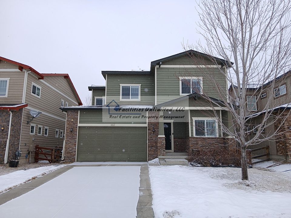 Welcome to the Stone Creek neighborhood. This newer home is a 3 bedroom 2 1/2 bathroom. Enter the front door and into a large entry. On the main floor there is an open space, 1/2 bath, and open living room, dining room, and kitchen. Kitchen includes stainless steel appliances, granite countertops, and a pantry. The dining room has patio doors that lead into a xeriscaped backyard with a fire pit. Upstairs has a family room, laundry closet with washer/dryer, 2 bedrooms, a full bath, and a Primary suite that includes a walk in closet. Interior shutters installed on the windows. Pool, gym, and clubhouse access. Walking trails and a park within two blocks. Quick drive to Hwy 34 and I25. Home could be available sooner. Exterior pictures without snow are from the summer of 2022. 1 year lease. No smoking and no cats. Will consider 1 small fixed dog with a pet deposit of $300 and an additional $35 monthly pet rent. Tenant pays all of the utilities and maintains the yard. Security deposit is equal to the rent.