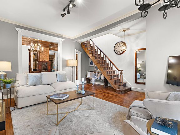 Own a piece of Jersey City history! This is a dream location right across the street from Washington Park & steps from the Congress St Light Rail Station. This 2 family home has been lovingly restored featuring stunning finishes and attention to detail throughout. The layout boasts a combined 2000+ square ft of living space consisting of a studio apartment currently being used as a profitable and turn-key AIRBNB and an owners duplex with 3 bedrooms (+home office) and 1.5 baths. As you step inside through an inviting porch, natural oak floors stylishly flow into an open floorplan with a living room that opens up to a formal dining room displaying special touches- a ventless "green" fireplace, unique chandelier and historic molding along with a convenient powder room. The stylish chef's eat-in kitchen complete with stainless steel appliances, butcher block counter and pantry opens up to your private backyard, ideal for hosting gatherings with loved ones. Central HVAC enhances your day to day living. Enjoy all the Riverview arts district Jersey City has to offer with light-rail transportation that connects to the PATH station right outside your doorstep and the NYC bus stop at Paterson Plank Rd & Palisade Ave. Countless new restaurants, bars, shopping, parks, Riverview Farmers market, transport links and Hoboken just minutes away, this home truly has it all. Don't wait to own this pristine residence ~ only lived in by 4 families since 1890! You will want to own it once you see it.