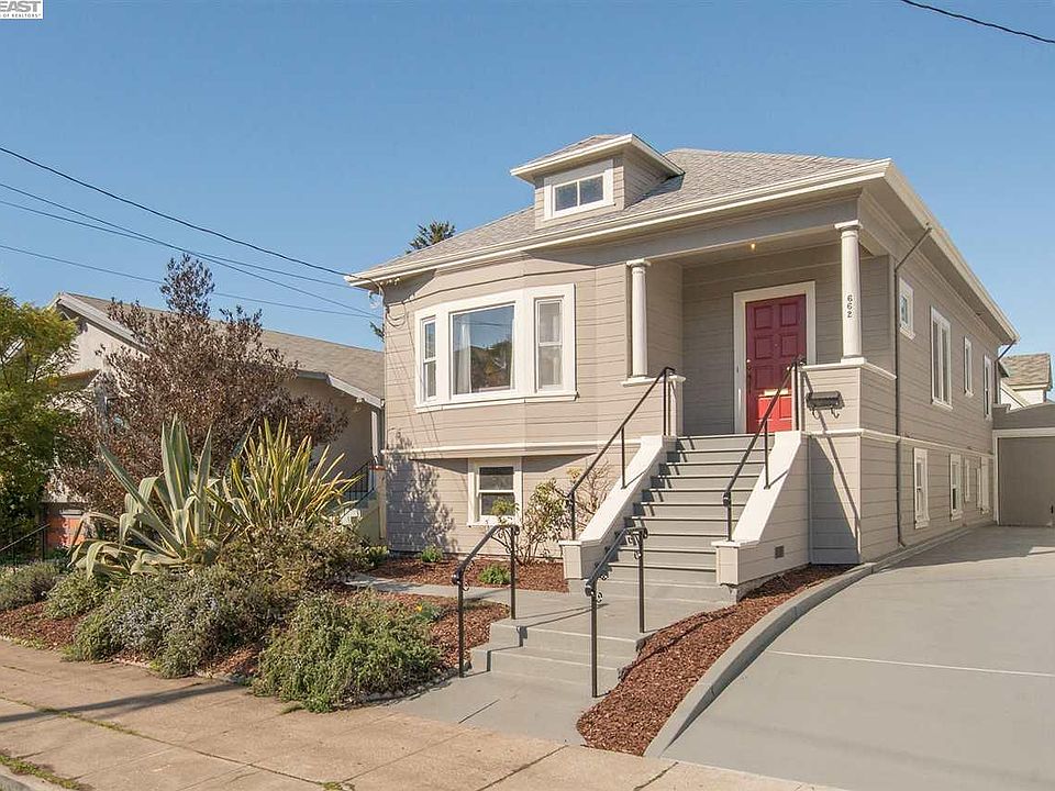 Urban living at its finest in this classic Craftsman bungalow with charming ground floor unit in North Oakland’s Bushrod Park neighborhood! 662 Poirier Street was built in 1907 and features tons of vintage charm including a handsome porch entry, original built-in cabinetry in dining room, lovely detailed doorknobs, baseboards & moulding, rich wood floors, wainscoting & wash sink in laundry room, and exquisite antique light fixtures. Because the home sits up from the street, the overall feeling is that of a living space that feels bright, open, and airy. The floor plan is a classic Craftsman configuration with two bedrooms and one bathroom but with an addition to the back bedroom ideal for an office, playroom, or a third bedroom. Modern updates include central heating, dual pane windows, checkerboard linoleum, sleek quartz counters in kitchen with stainless appliances including a dishwasher and gas stove. Eat-in kitchen looks out to lush back yard and deck. Downstairs is an overwhelmingly lovable one bedroom / one bathroom unit. The vintage charm continues with wood floors, Formica kitchen countertops with metal trim, and a clawfoot tub in the bathroom. Modern updates include recessed lighting and checkerboard linoleum in bathroom. Kitchen features a gas stove and stainless refrigerator. Bedroom has a large walk-in closet and additional storage can be found in built-in storage compartments. Front yard features incredible curb appeal with mature and drought resistant plants. Back yard has a lovely deck and more than enough space to create your own urban oasis. Plenty of storage options with basement workshop area, attached one car garage, separate storage room off of garage, and a large driveway that can accommodate many cars tandem style. Fantastic location! Close to BART and plenty of coffee options; only a few blocks away from grabbing a cup at Alchemy Coffee, Sweet Adeline, or Nomad Café and jumping on a train at Ashby BART. Multiple grocery store options with Berkeley Bowl, Whole Foods, and Safeway just minutes away. Centrally located near Rockridge, Temescal, Elmwood, Lorin, and Downtown Berkeley neighborhoods. 88 Walkscore! 99 Bikescore!