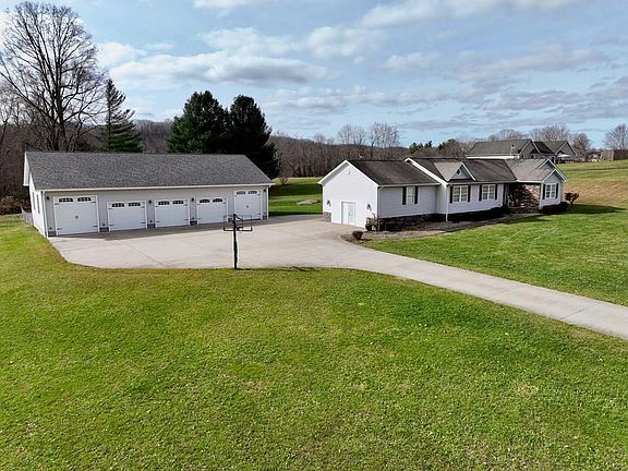 Almost 3 flat acres situated in the Appalachian Mountains of WV! 2400 Sq ft 5 car detached garage with 14 foot ceilings. 40x60. Big enough to put your RV inside. Drainage for washbay, Home has Hardwood floors throughout, custom kitchen, 4 bedroom rooms, Stone fireplace of the kitchen. Large 529 sq ft family room off the kitchen. Enjoy the 27 foot above groung swimming pool.