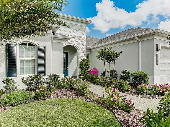 This home will take your breath away when you walk in the door and has all the luxurious and elegant upgrades too! The open floor plan flows from dining to living to grand open kitchen and it all looks out over the large lanai and out onto the beautifully landscaped yard with lake view. Rich details include: POWER STORM SMART SCREENS on the Lanai, 12' tray ceilings, generous walk-in pantry, split floor plan, large and stunning UPGRADED MASTER CLOSET with cabinets & shelving, CABRIA quartz countertops, CROWN MOLDING throughout, aquarium window looking out over the lanai, INCLUDING IMPACT LOW e-VINYL WINDOWS and GLASS FRONT DOOR! Make luxury a reality in the stunning master bath with stand alone tub and upgraded tile, double sinks. Open the lanai sliding glass doors for indoor outdoor living at it's finest! Grey Hawk Landing is a gated community includes two community pools, fitness center, tennis courts , bocce ball courts, playground, basketball courts, soccer field, baseball field and football field. Top A-Rated Schools! Make this home yours today!