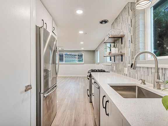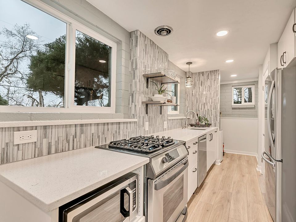 Renovated unitBeautiful kitchenLarge vertical tileLower floor unitContemporary lookCalming color scheme