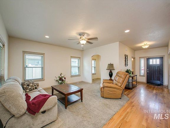 Englefield Green is Boise's favorite 55+ community. Wonderful open floorplan, 2 bed/2 bath, office & single level design with no steps! You are going to love this kitchen with solid granite counters, center island, beautiful upgraded cabinetry & huge pantry with bakers shelf & outlet. Kitchen, dining & living are open with lots of windows. Nice separate office space located off of living area. Come & enjoy the private covered back patio & fully fenced yard! 2 car oversized garage offers an additional 13'x4" area for your extra projects. Laundry room has sink & extra closet storage. Other community amenities include a clubhouse with gym, full kitchen & library & lots of monthly events to enjoy. Walking path surrounds the centrally located pond. Monthly dues include: Snow & ice removal from your doorstep, clubhouse, lawn & common area maintenance. Excellent location, close to Boise Towne Square Mall, freeway access, medical and entertainment! Photos include the community clubhouse and pond!